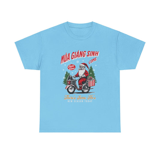 Festive Holiday Unisex Heavy Cotton Tee - Santa On Bicycle Design